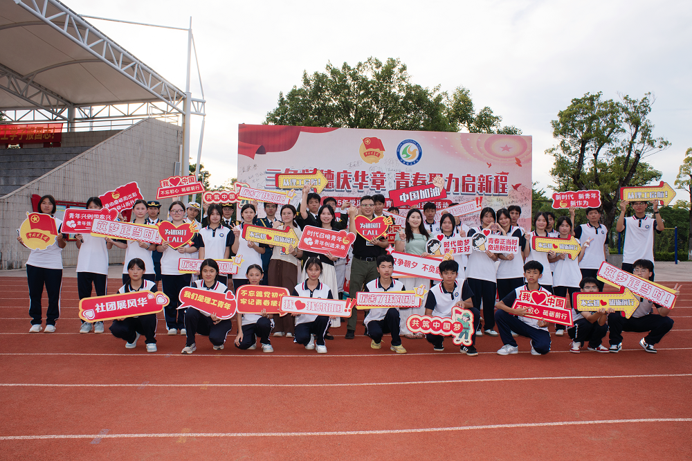 三色润德庆华章 青春聚力启新程——我校开展爱国主义教育月暨社团...为庆祝中华人民共和国成立76周年,弘扬爱国主义精神,践行“三色德育”理念,校团委于近日在运动场隆重举办...查看详细 -