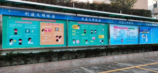 此外,学校还通过LED屏、横幅、海报及宣传栏传播有关疫情防控的宣传标语及防控指引,强化防疫工作氛围。