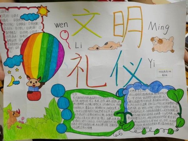 此次活动,我校共计6500余名学生参与,通过7个教学部组织开展国旗下讲话活动、文明主题班会课、手抄报活动、黑板报活动、文明监督岗活动、小视频宣传拍摄活动等,共评出文明礼仪优秀集体7个,先进个人300余名,优秀奖14项,创意奖26项,人气奖29项,文明班级35个。