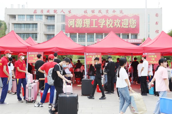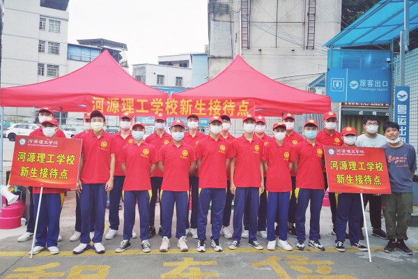 报到当天在河源市汽车总站、新城汽车站、火车站设置新生接待点