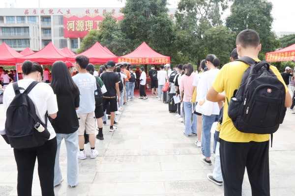 新生依次排队审核户口