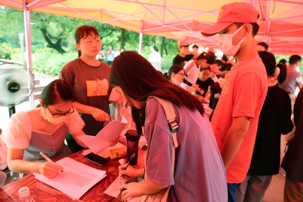 志愿者协助新生查找班级信息