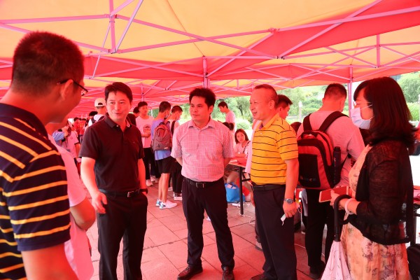 学校党委书记、校长李世锋率队来到迎新现场,看望2020级新同学,慰问迎新工作人员。每到一处,校领导都与工作人员、新生亲切交谈,深入了解迎新工作开展情况,详细询问新生的报到情况、住宿安排、意见建议等,并对工作人员和志愿者的辛勤付出表示感谢。